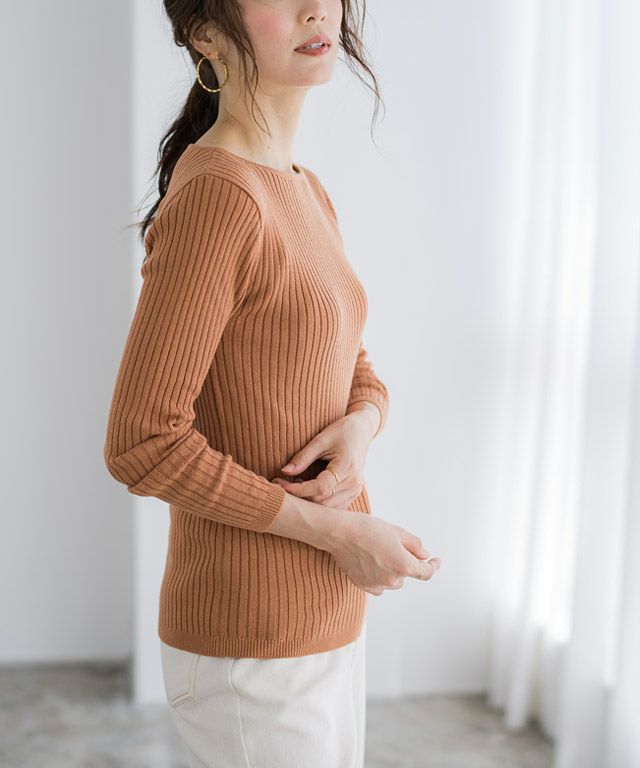 デイリーに着まわせる“選べるネック綿混リブニット”
