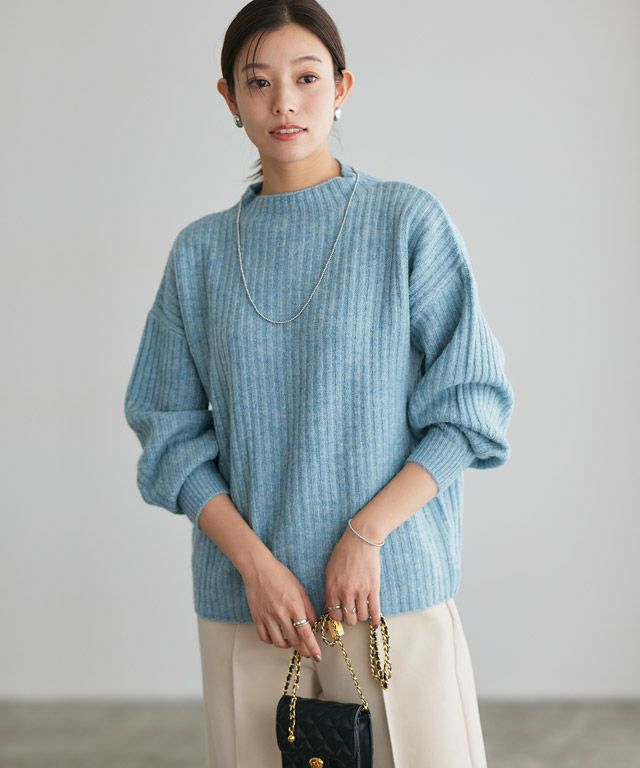 丸みのあるシルエットが女性らしい“ふんわりウォッシャブルボリューム袖ボトルネックニット”