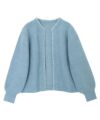 襟から前立てにあしらったパールが印象的なカーディガン。上品でインナーも合わせやすいノーカラーデザインで仕上げました。いつものコーデに羽織るだけでトレンド感と華やかさをプラスしてくれます。