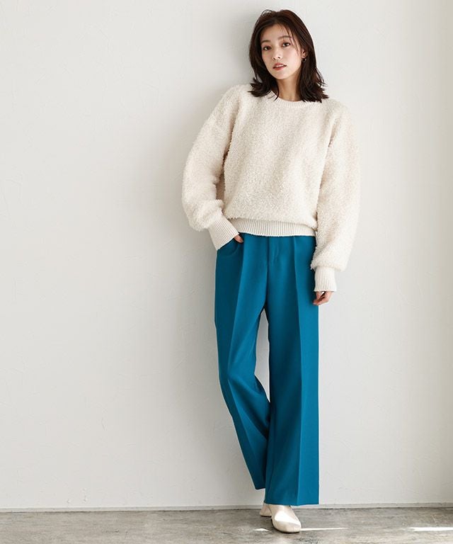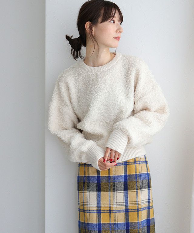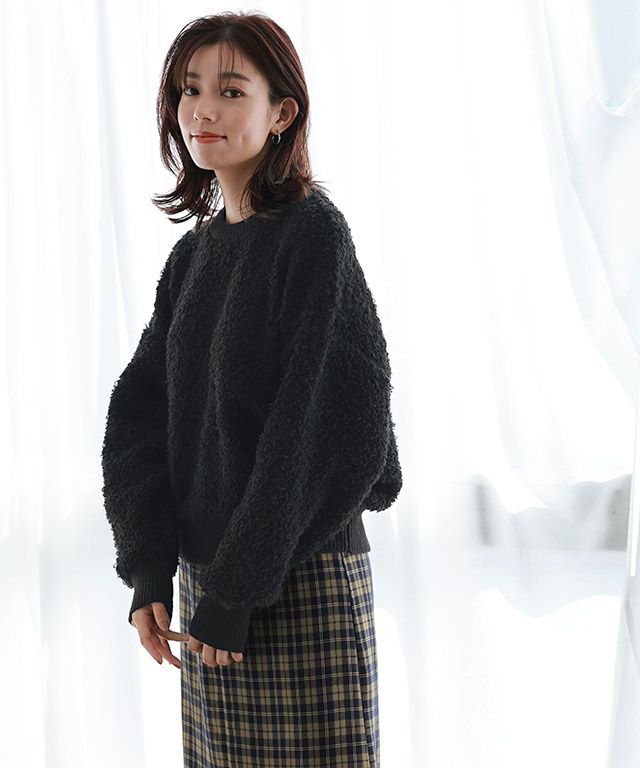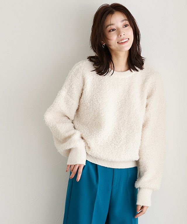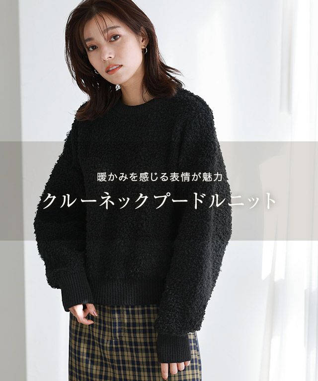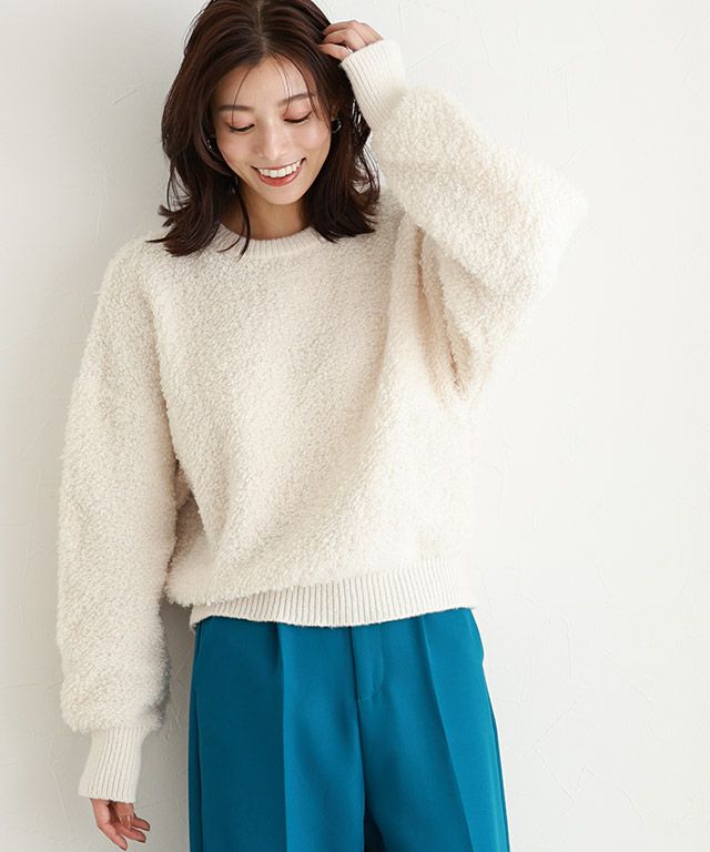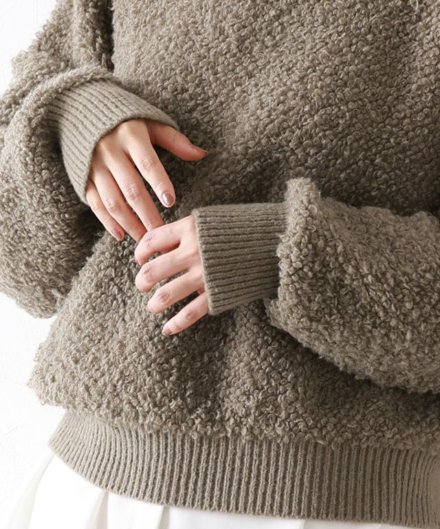ふんわりとした糸をループ状に編んだプードルニット。暖かな印象と表情をプラスしてくれます。