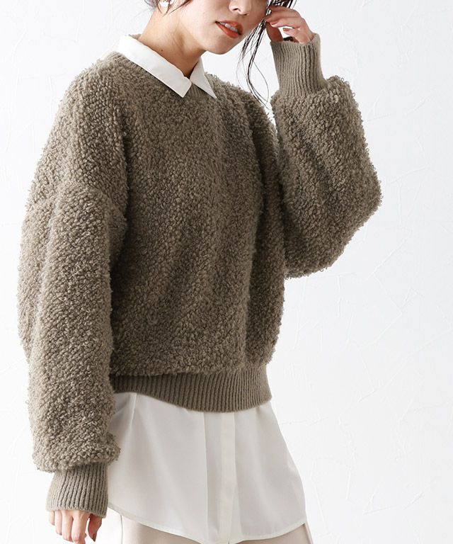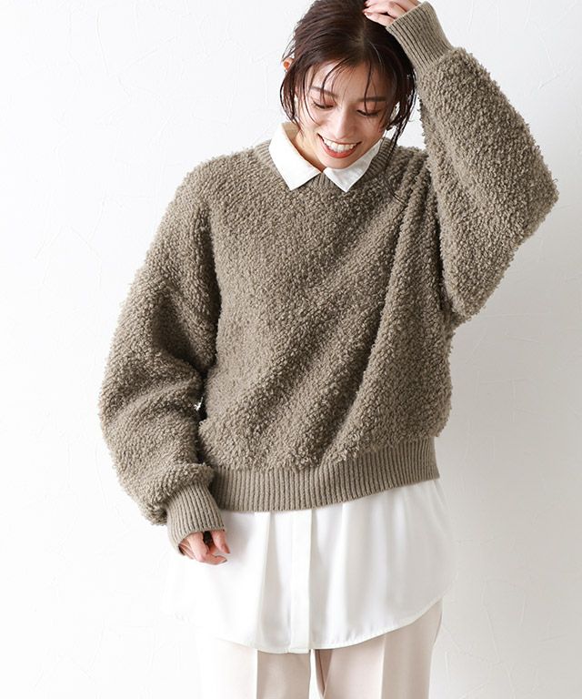 暖かみを感じる表情が魅力“クルーネックプードルニット”