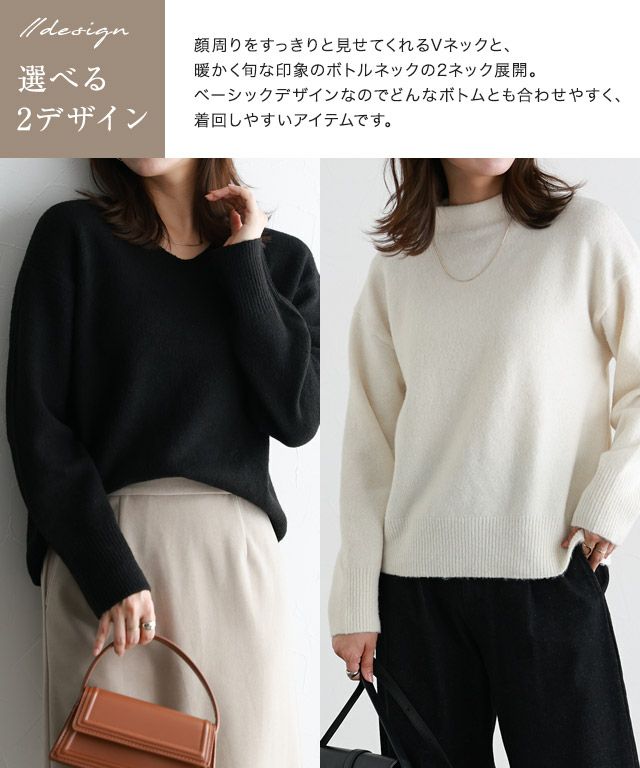 包み込んでくれるような柔らかな温かみのある“ネックが選べるウールライクニット”