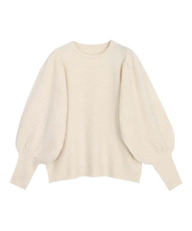 ボリュームのあるスリーブが気映えする“ふんわりウォッシャブルパフスリーブニット”