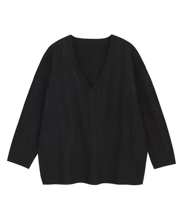 【アウトレットSALE!】ケーブル柄深Vネックニット【スピード配送】