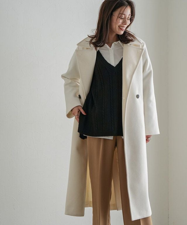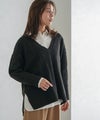 シンプルなカットソーや、タートルネックなどとの旬のレイヤードスタイルが楽しめる一枚。冬の重くなりがちなスタイリングも深めのネックラインですっきりとした印象に導きます◎