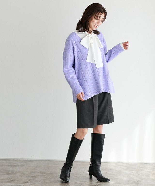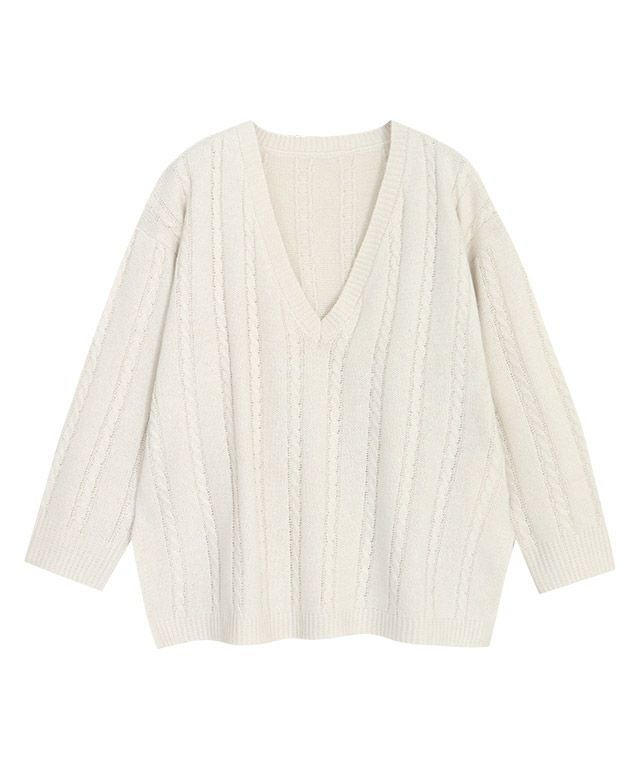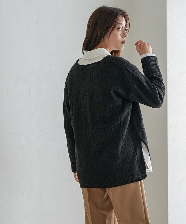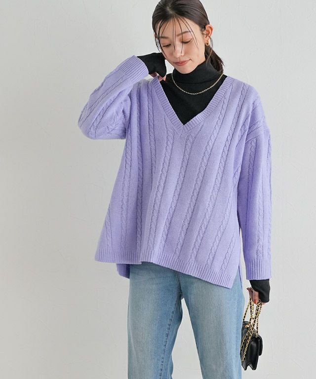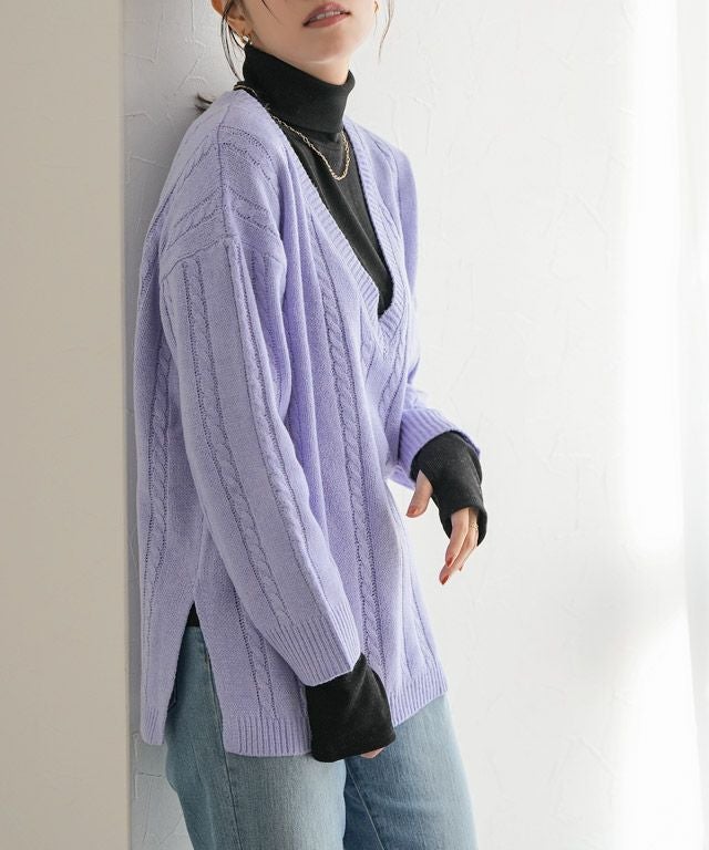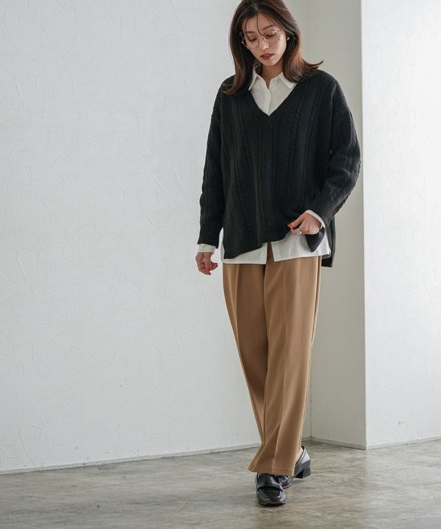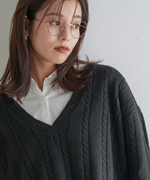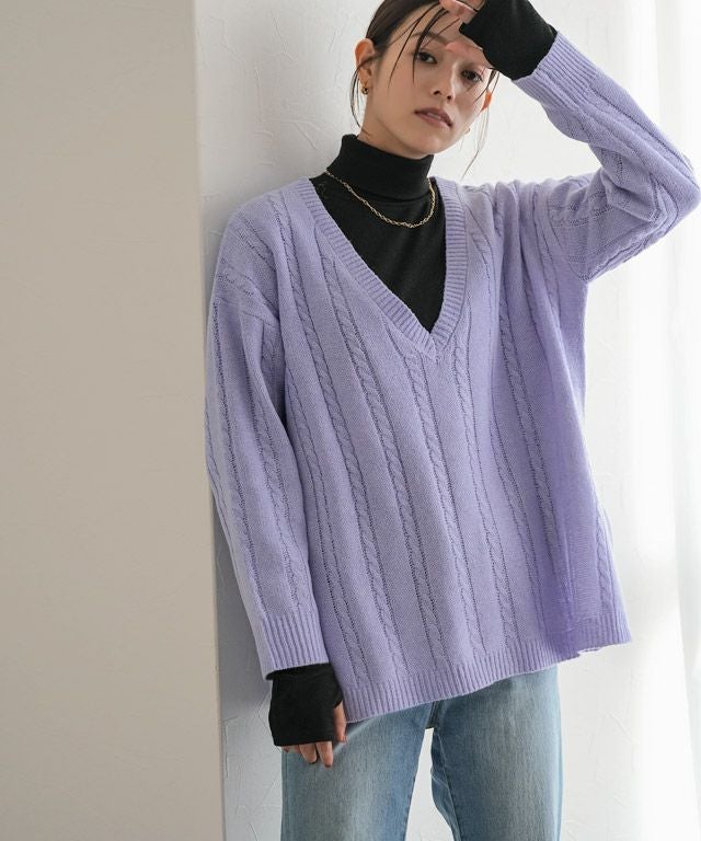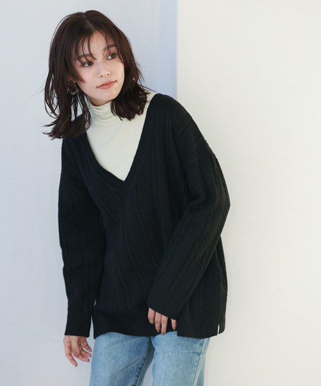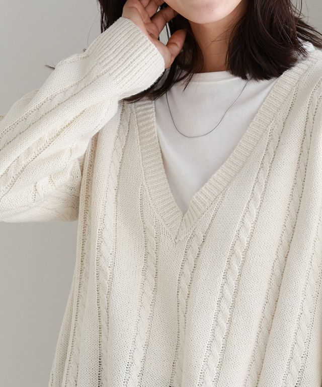 レイヤードスタイルが楽しめる“ケーブル柄深Vネックニット”