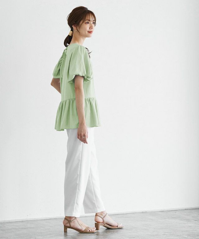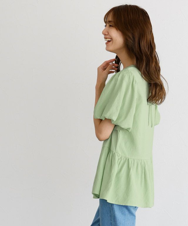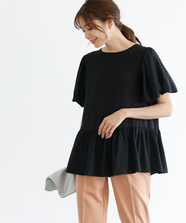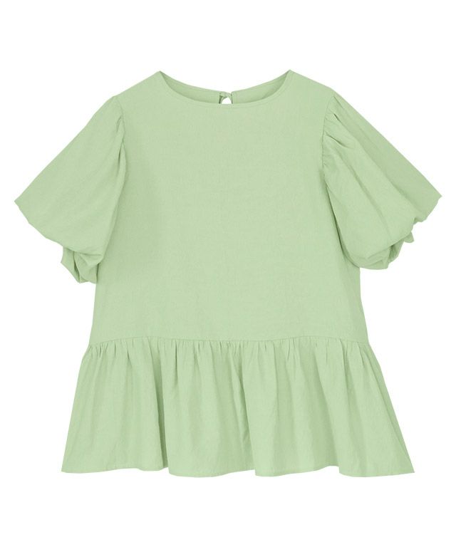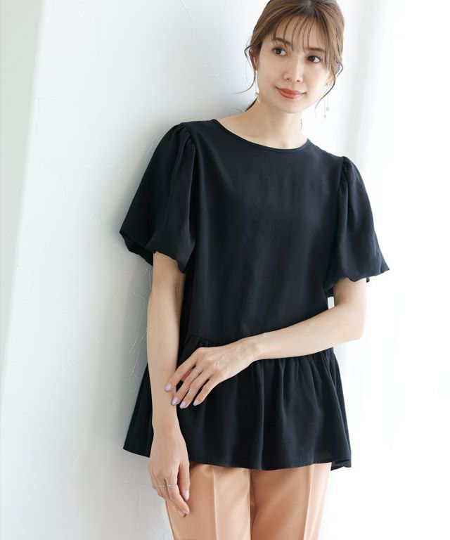 ボリュームのあるパフスリーブがトレンド感をプラスし、腕周りを華奢に見せてくれます。フリル切り替えで女性らしさを演出し、体型カバーにもなるデザイン◎シンプルなボトムスに合わせても着映えするブラウスです。