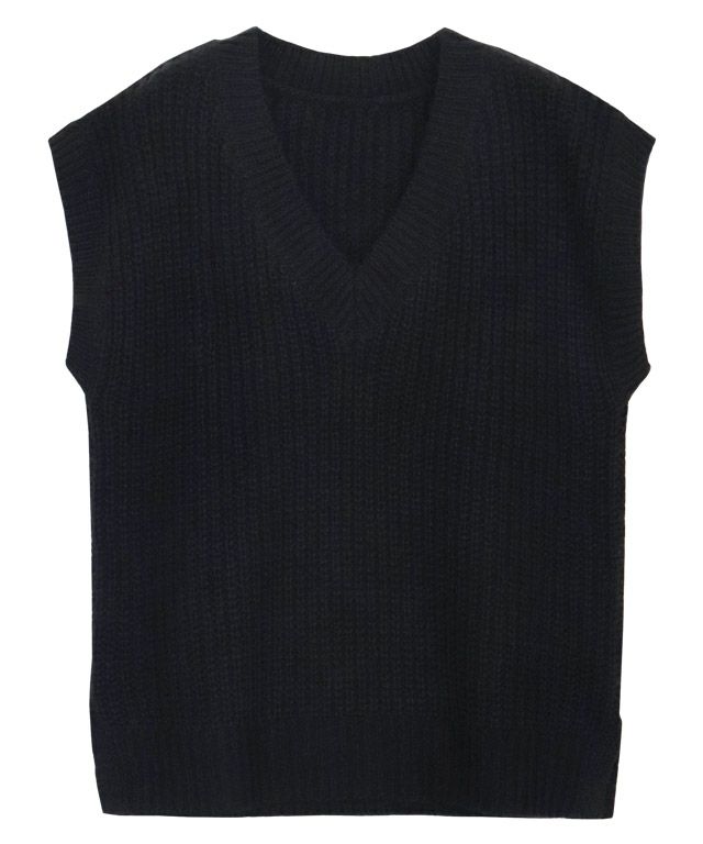 メリハリのあるレイヤードスタイルに“モヘアタッチVネックニットベスト”