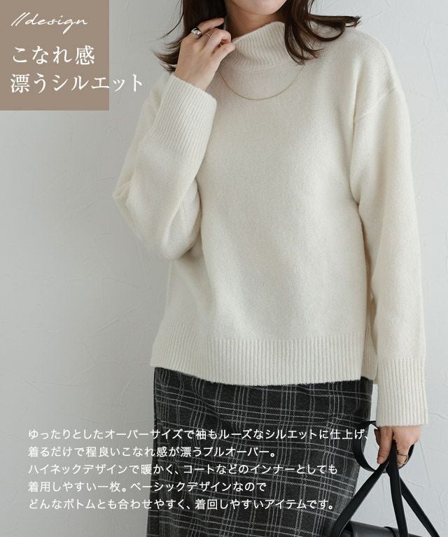 ゆったりとしたオーバーサイズで袖もルーズなシルエットに仕上げ、着るだけで程良いこなれ感が漂うプルオーバー。ハイネックデザインで暖かく、コートなどのインナーとしても着用しやすい一枚。ベーシックデザインなのでどんなボトムとも合わせやすく、着回しやすいアイテムです◎