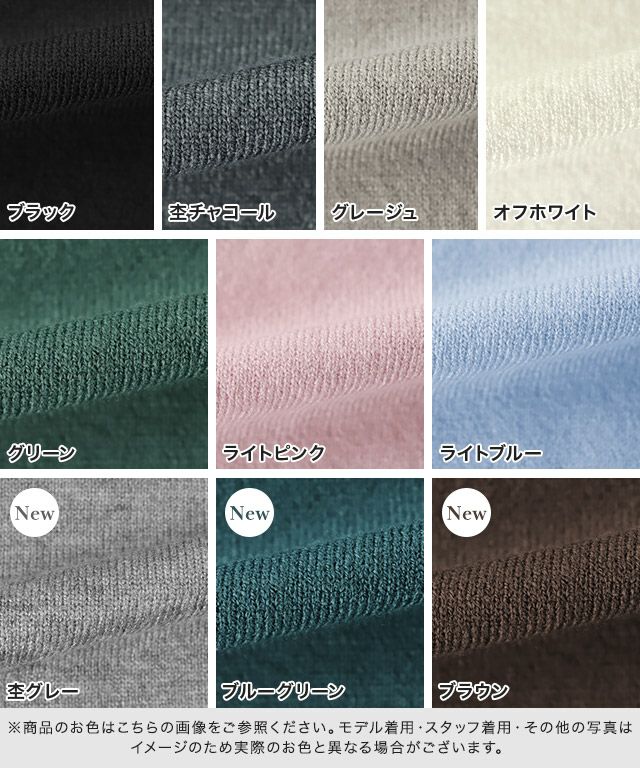 また、ニット製品は生産の過程上「生地を織る際の糸の継ぎ目」繊維の「混紡」、プレス加工、製品洗い加工によって形やサイズ(5cm前後)に誤差が生じる場合がございますが品質上の問題はございません。