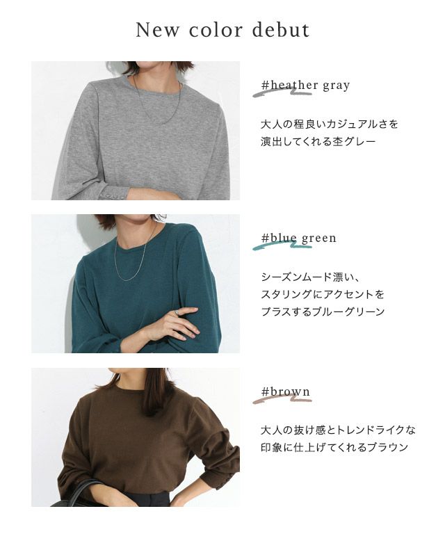 レーヨン混でもちもちな肌触りのニット。素肌に触れてもチクチク感のない、柔らかな肌触りが魅力の一つ。やや薄手にすることでレイヤードやジャケットのインナーなどでも響きにくく着用しやすい一枚に仕上げました。