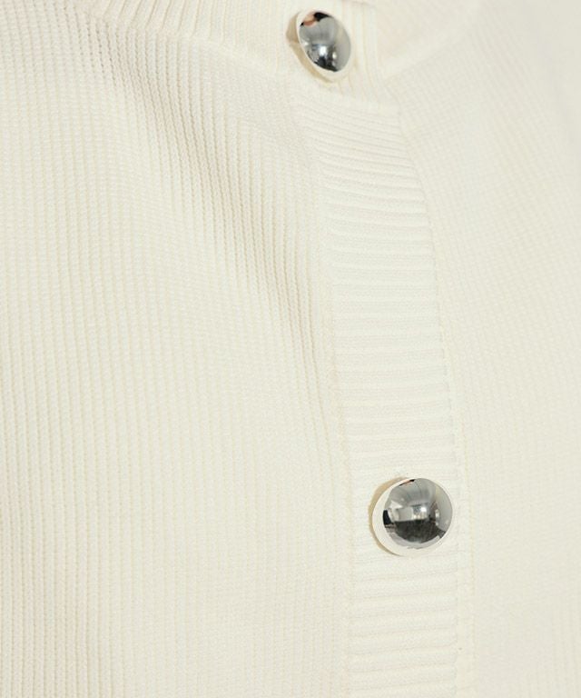 フロントに施したBIGボタンがコーデのアクセントになるニットベスト。ノースリーブデザインが軽やかさと、抜け感を演出します。程よく短めの着丈が今っぽい印象に。