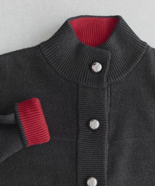 コーデの主役になる一枚。ボタンデザイン配色ニットカーデ