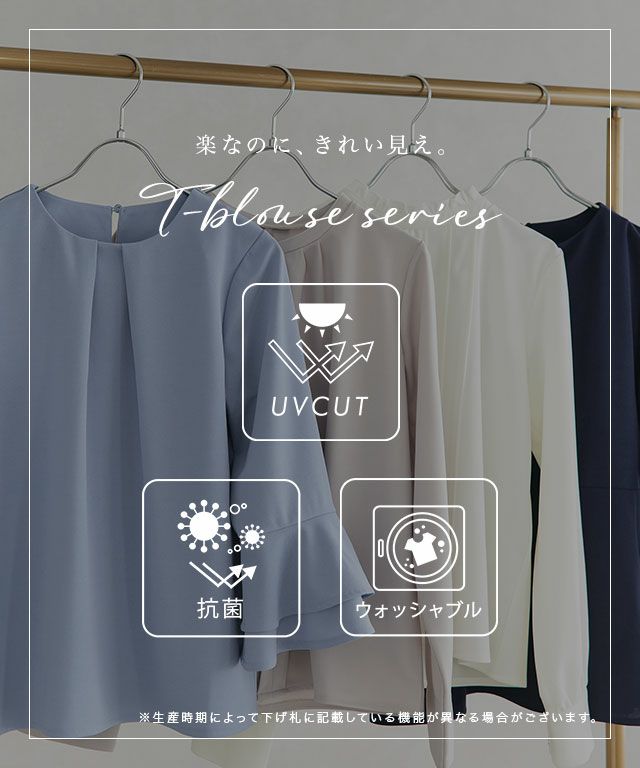 “カットソーなのにブラウス見え”を叶えるカットジョーゼット素材を使用。程良い落ち感がきちんとした印象をプラスします。伸縮性があり、裏面がさらっとした肌触りのブラウス。シワになりにくく、お手入れが簡単なのにキレイ見えするところも魅力の一つです。