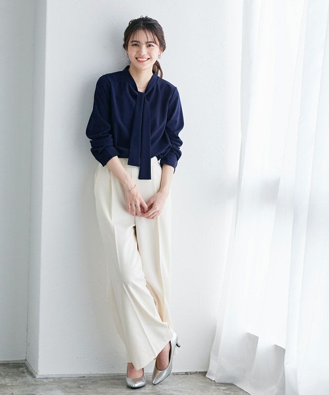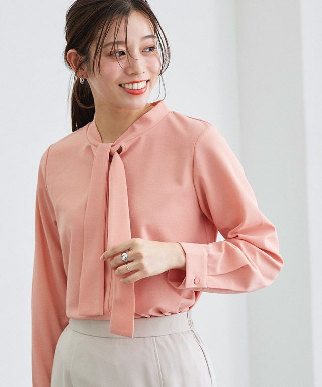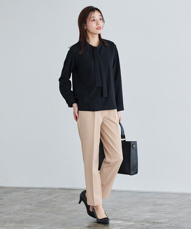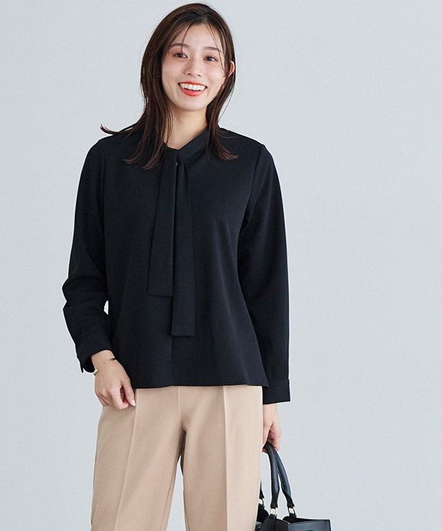 “カットソーなのにブラウス見え”を叶えるカットジョーゼット素材を使用。程良い落ち感がきちんとした印象をプラスします。伸縮性があり、裏面がさらっとした肌触りのブラウス。シワになりにくく、お手入れが簡単なのにキレイ見えするところも魅力の一つです。