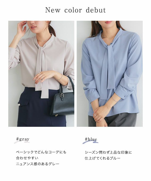“カットソーなのにブラウス見え”を叶えるカットジョーゼット素材を使用。程良い落ち感がきちんとした印象をプラスします。伸縮性があり、裏面がさらっとした肌触りのブラウス。シワになりにくく、お手入れが簡単なのにキレイ見えするところも魅力の一つです。