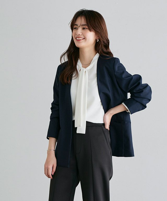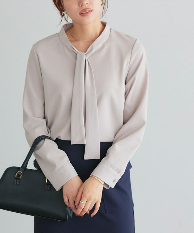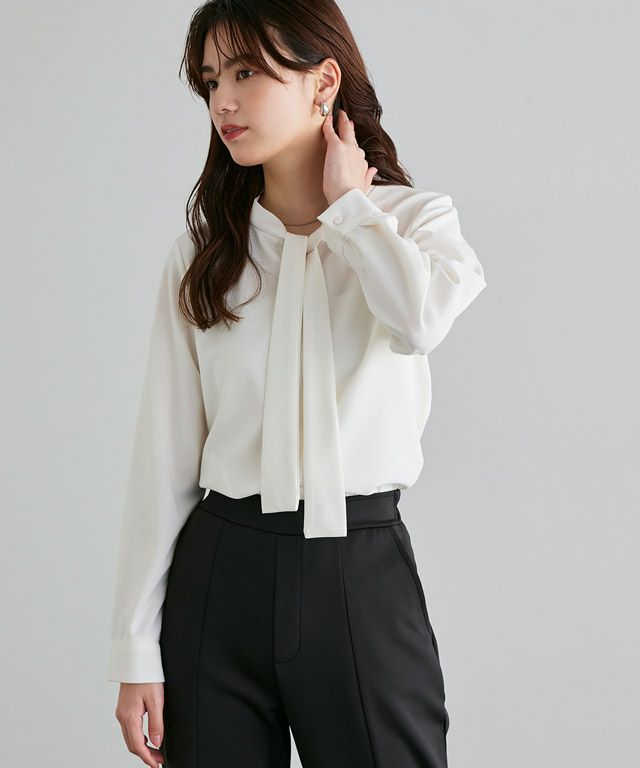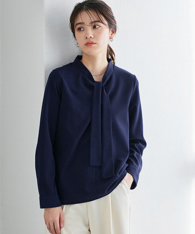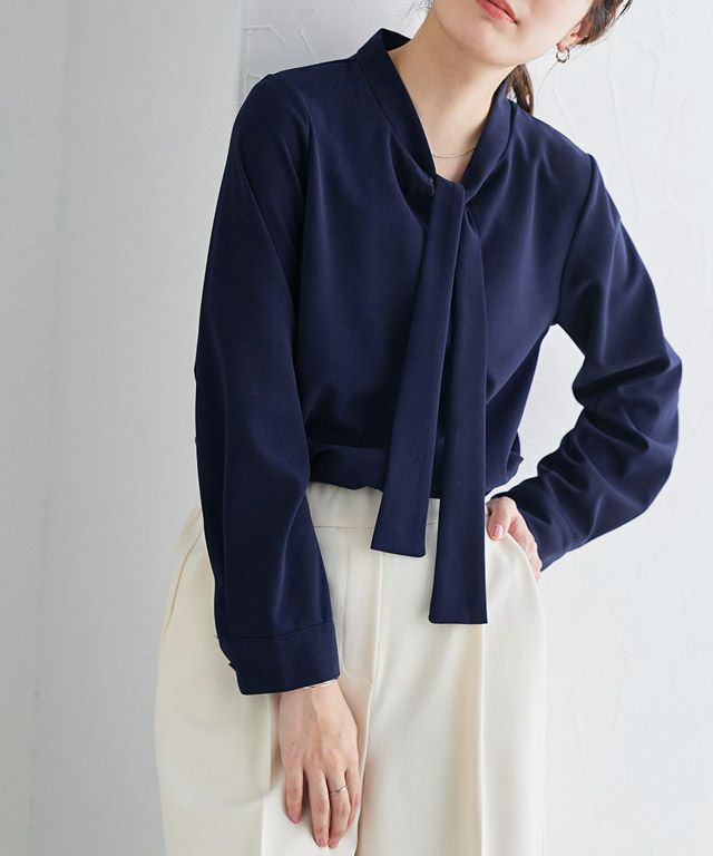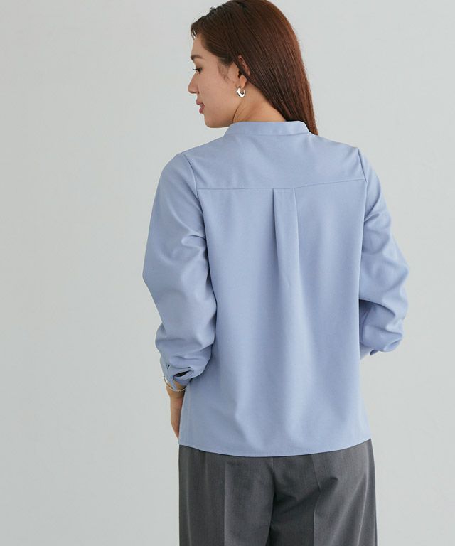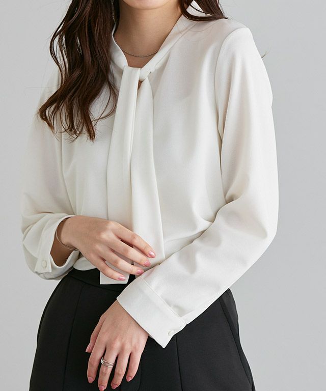 タイデザインがアクセントとなり、コーディネートが広がる一枚。袖口のカフスからタックを施すことで、シンプルなスリーブデザインでもさりげなくアクセントを演出します。
