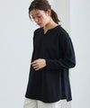 シンプルながらもキーネックデザインがすっきり見えし、抜け感をプラス。お尻まですっぽり隠れるチュニック丈でさりげなく体型カバーしてくれるのも魅力の一つです。