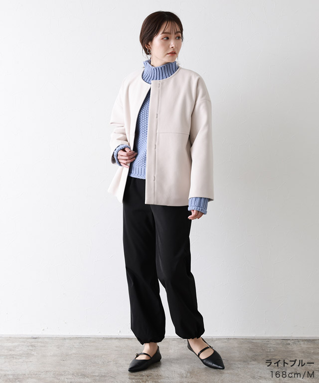 パンツスタイルはもちろん、ワンピースの上に着てもスタイル良く見えてたくさん着ました。首周りも高すぎず首の短い私には着やすかったです。ライトグレーは、水色っぽい色味で綺麗でした。