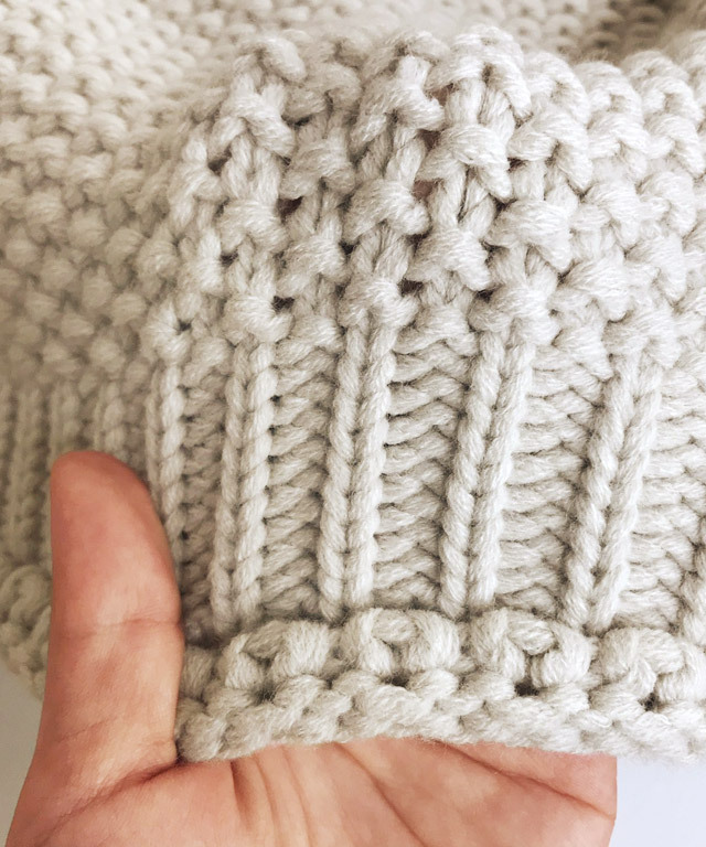 オフベージュとニットの編み目に透け感が生じます。