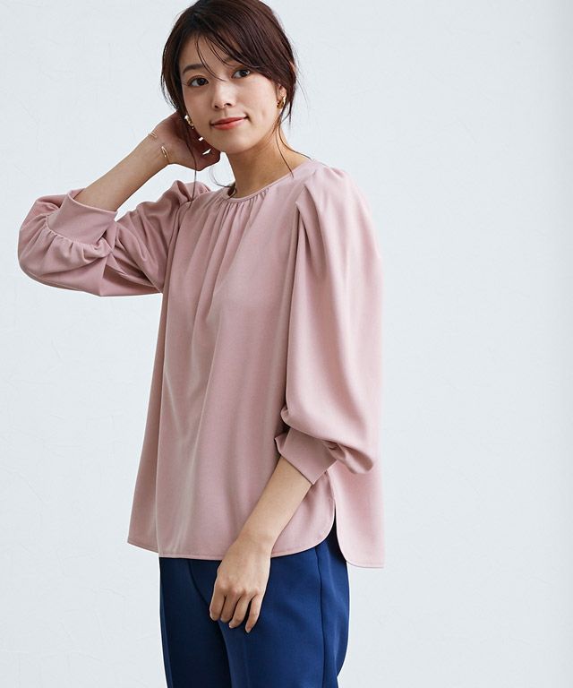 カットソーなのにブラウス見え”を叶えるカットジョーゼット素材を使用。程良い落ち感がきちんとした印象をプラスします。