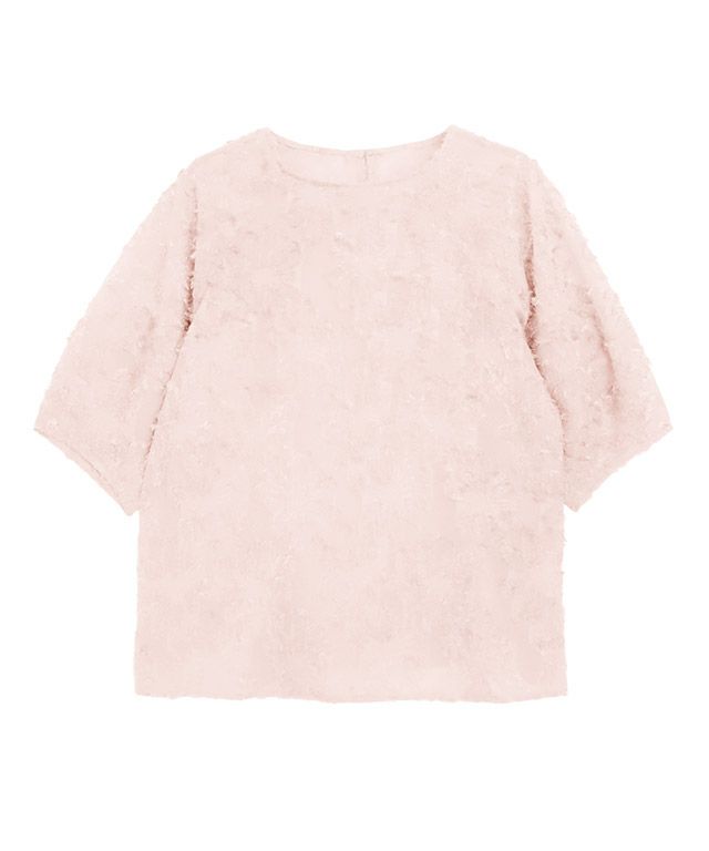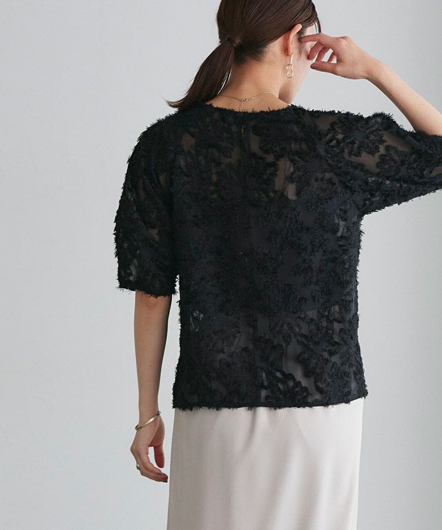 ラグラン切り替えと袖を切り替えたディテールが女性らしい丸みのあるシルエットで、フェミニンな一枚◎二の腕はカバーしつつ、程良いシアーで抜け感があり、大人な雰囲気に仕上げてくれます◎