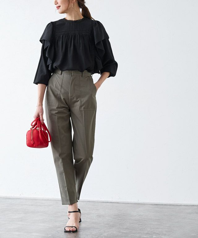 柔らかく落ち感のある薄手の素材。程よい落ち感で上品さを装いながら、女性らしいシルエットを演出します。