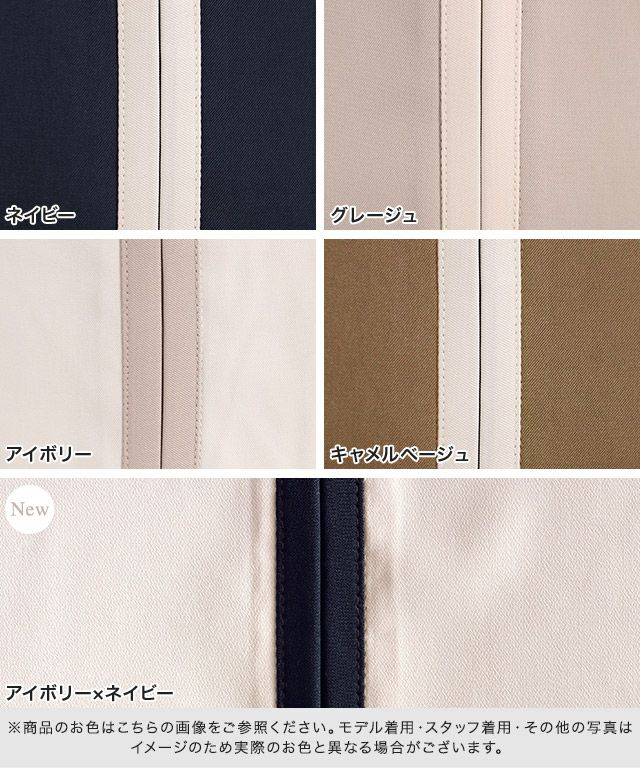 襟元から裾に向かってあしらったパイピングが、全体的にすっきりとした印象を演出。さらに配色デザインにすることで縦ラインを強調し華奢見せが叶います。