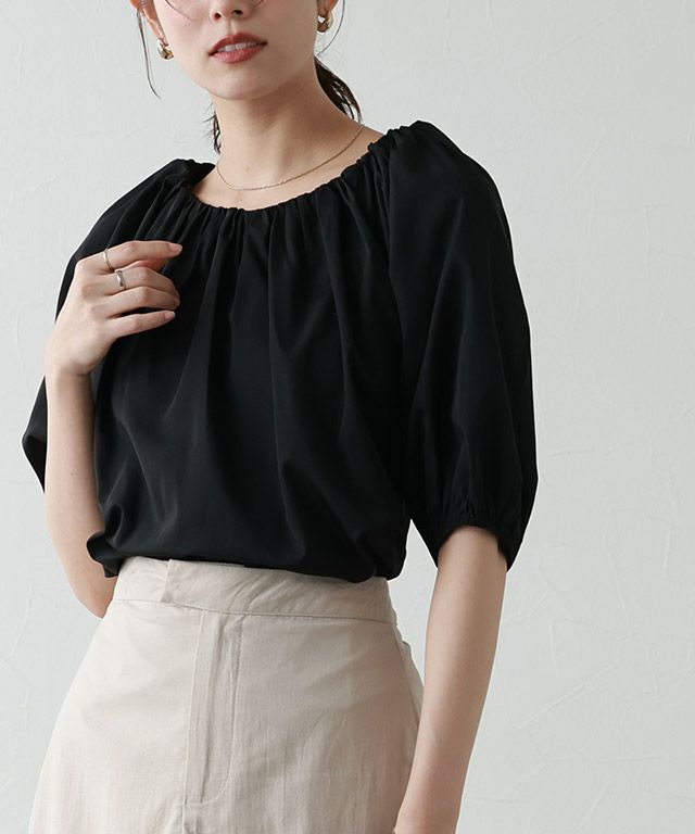 シンプルなパフスリーブ、トレンドのオフショルダーの2wayで着られるデザインブラウス。表情を変えて着回しができるアイテムです◎襟ぐり部分はゴムを入れることでオフショルダーにできる仕様にしています。カジュアルから上品スタイルまで着回せるアイテムです。