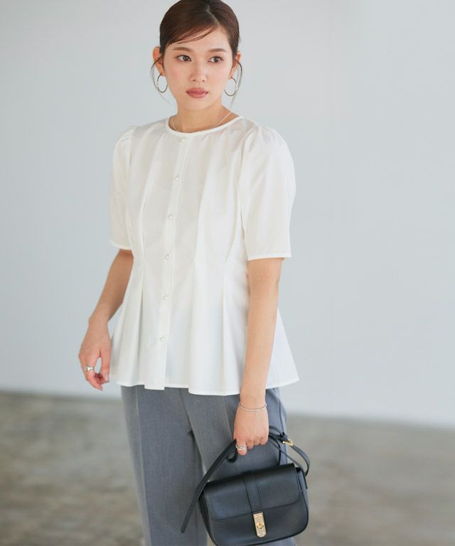 ウエストタックのペプラムシルエットがこなれ感のあるブラウス。窮屈感なく着用でき、タックがすっきりと見えを叶えます。立体感のあるパフスリーブで女性らしさをプラスし、二の腕周りをカバーしてくれます◎カジュアルにもきれいめにも着回せる一枚です。
