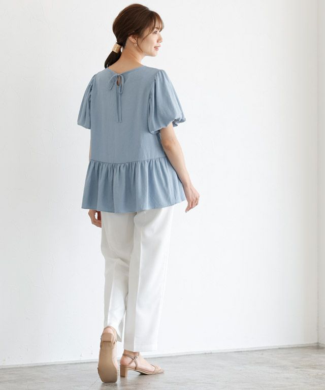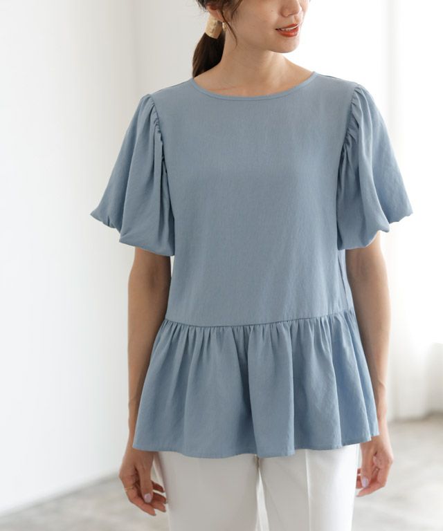 ボリュームのあるパフスリーブがトレンド感をプラスし、腕周りを華奢に見せてくれます。フリル切り替えで女性らしさを演出し、体型カバーにもなるデザイン◎シンプルなボトムスに合わせても着映えするブラウスです。
