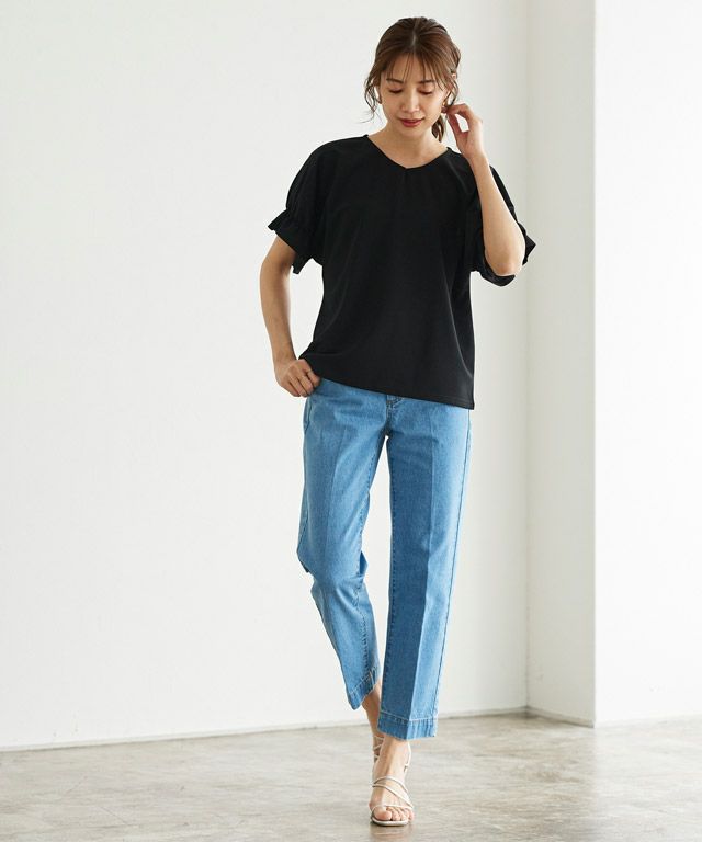 多機能素材が嬉しい“ギャザーキャンディスリーブTブラウス”
