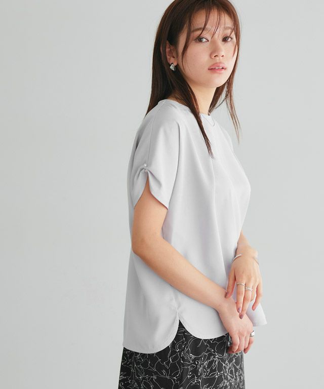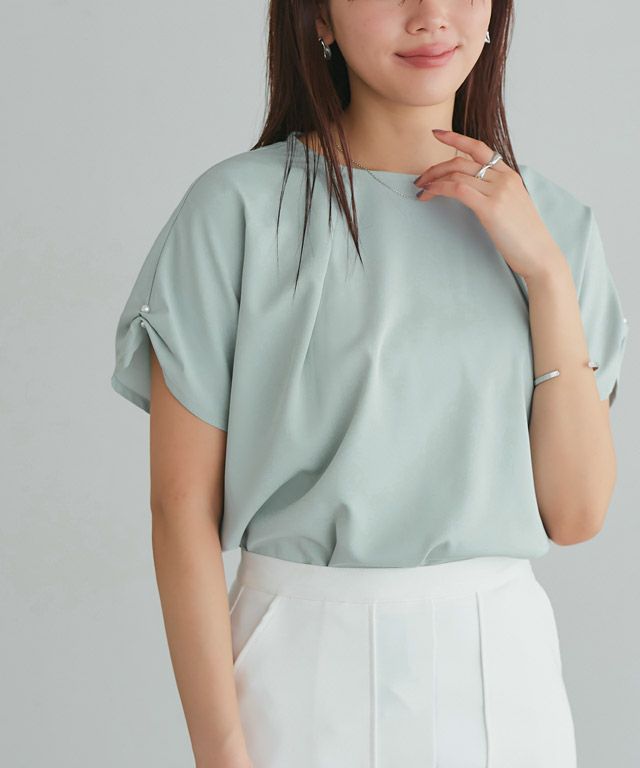 サラッとした着心地で、とても快適です。 袖のパールがかわいくて気に入っています!