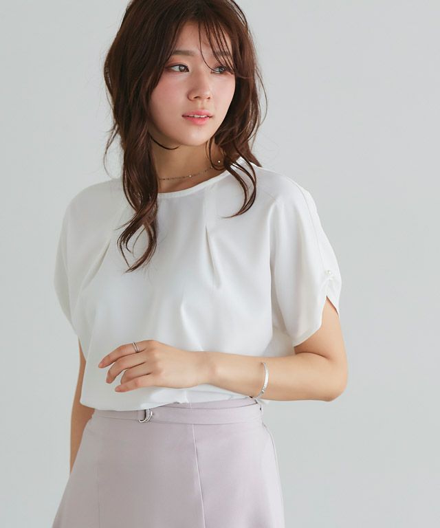 上品な印象へ導く“パールタックブラウス”