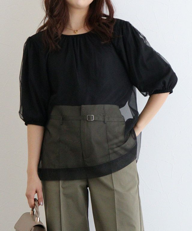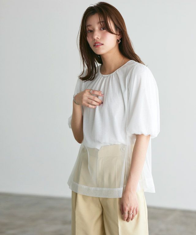 シンプルながらもトレンドライクに魅せてくれる“チュールバルーンブラウス”