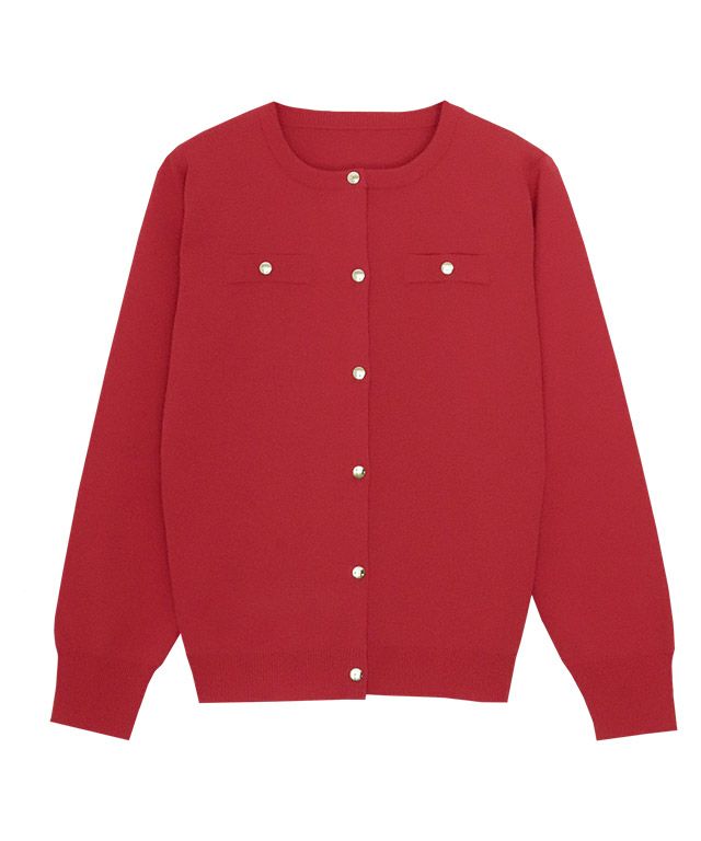 旬のスタイルをつくる“スポンジニットゴールドボタンカーディガン”