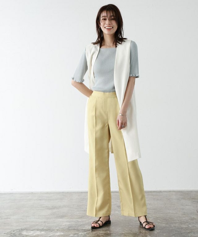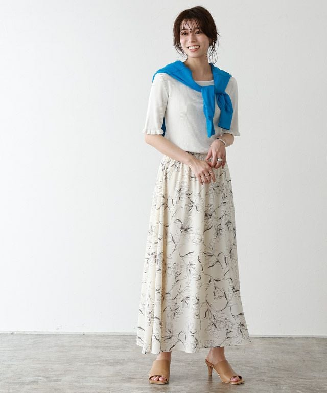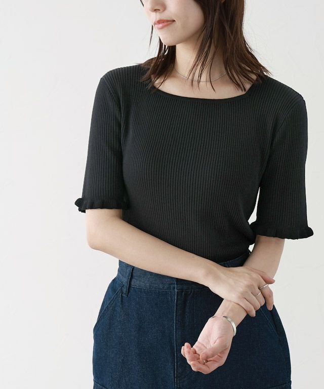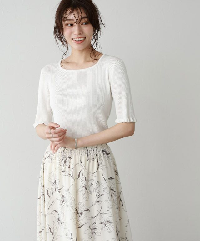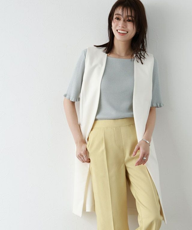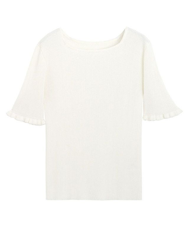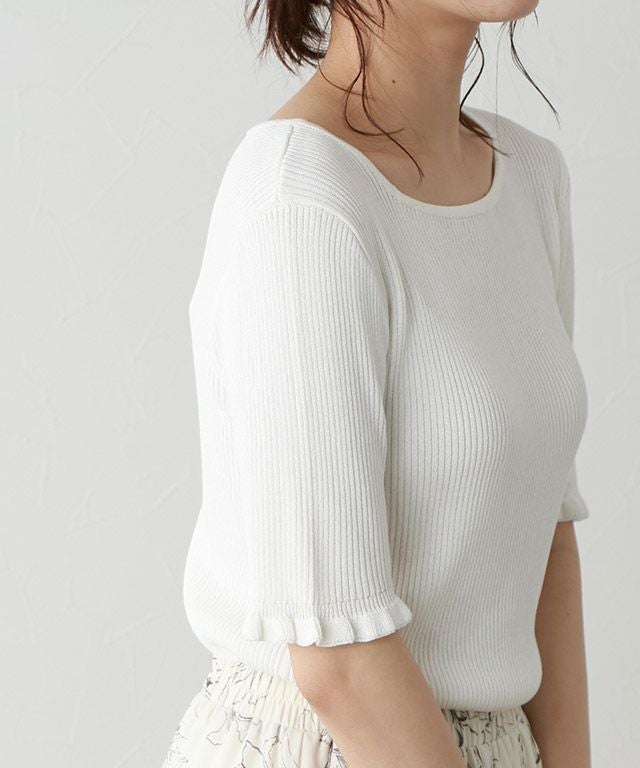 女性らしさ引き立つ“リネンタッチ袖フリルリブニット”