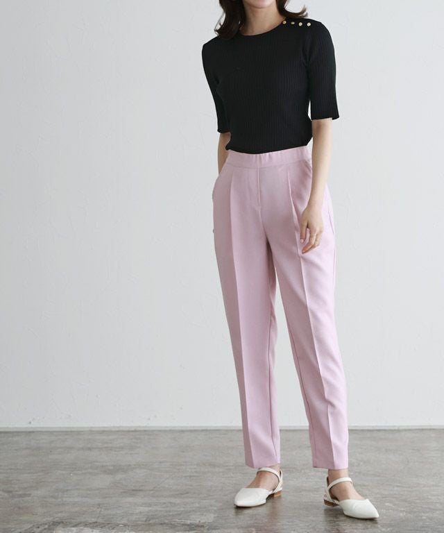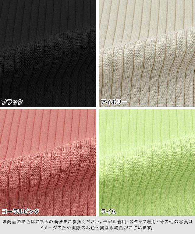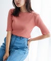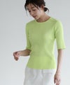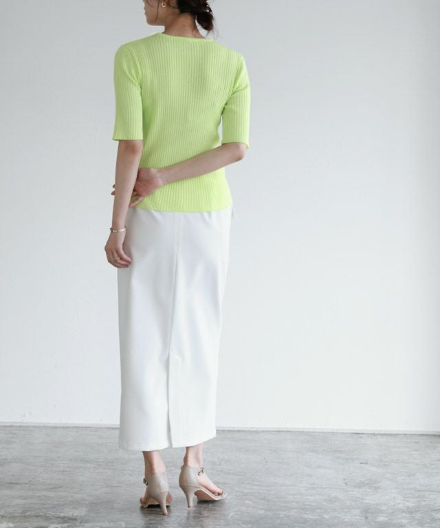 さらっとした風合いで清涼感があり、夏でも着心地の良いニット素材。少し光沢感があるのでカジュアルになりすぎず上品な印象に。表情がありすっきり見えするリブ編みで仕上げました。