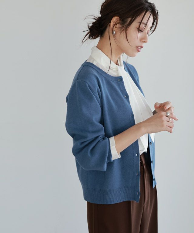 ボリュームスリーブと長めの袖リブに、ブラックボタンがスタイリングに程良いアクセントをプラスします。カーディガンとしてはもちろん短めの丈感に仕上げているのでトップス風としての着こなしも◎トレンドライクな印象に仕上げてくれる一枚です。
