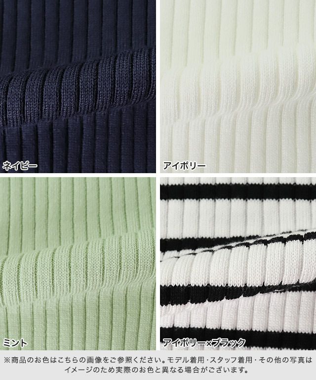 また、ニット製品は生産の過程上「生地を織る際の糸の継ぎ目」繊維の「混紡」、プレス加工、製品洗い加工によって形やサイズ(5cm前後)に誤差が生じる場合がございますが品質上の問題はございません。