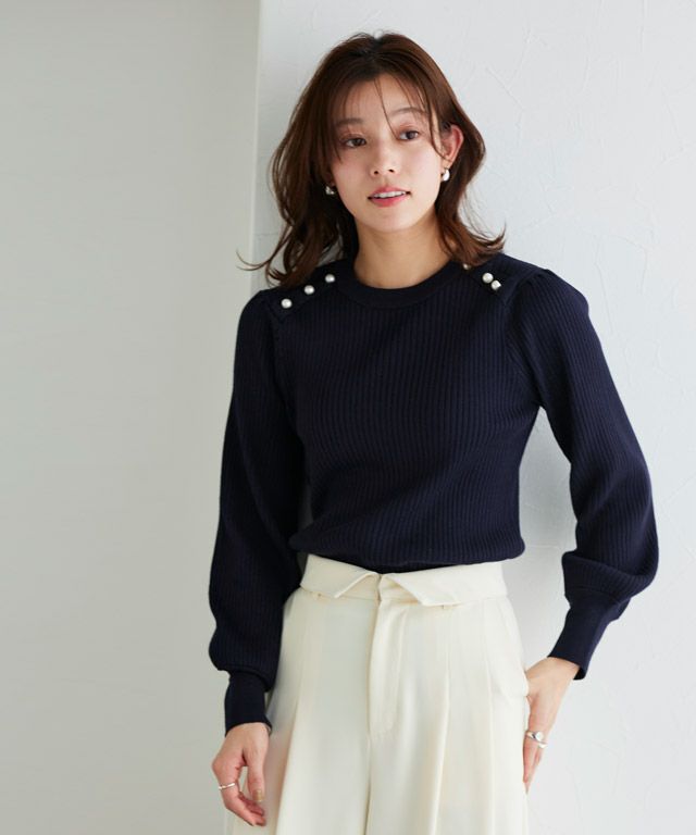 ショルダーパールボタンニット