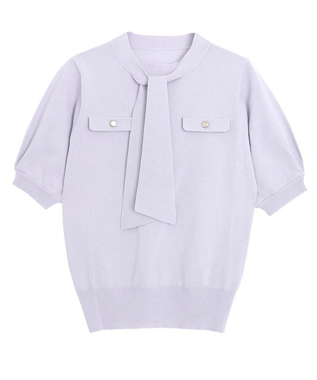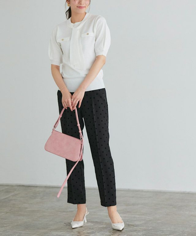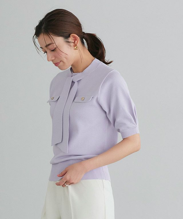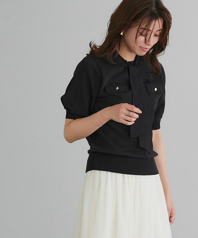 女性らしさを引き立てる“リネンタッチボウタイポケットニット”