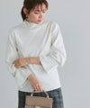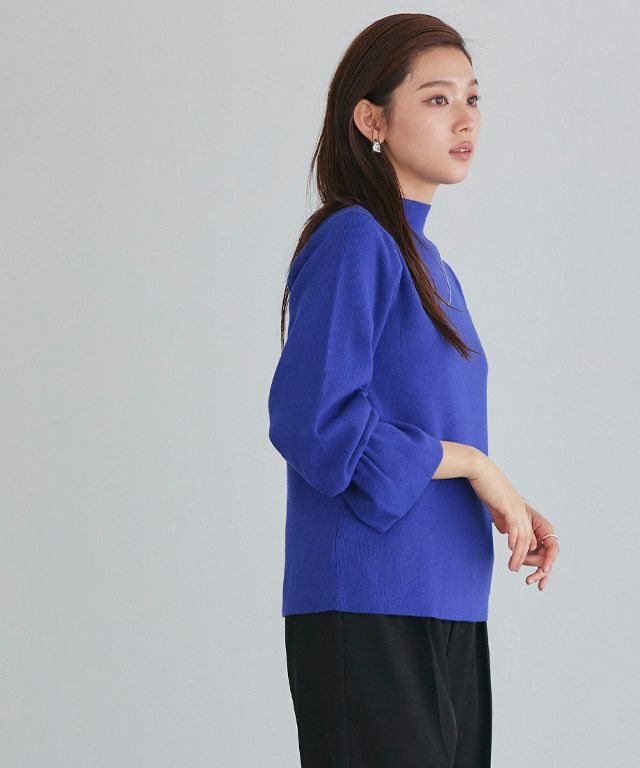 身頃はシンプルなデザインなので、様々なスタイリングに着回しやすい一枚。ハイネックデザインと、袖口にキャンディデザインをあしらうことで、スタイリングをこなれ感のある印象に導きます。