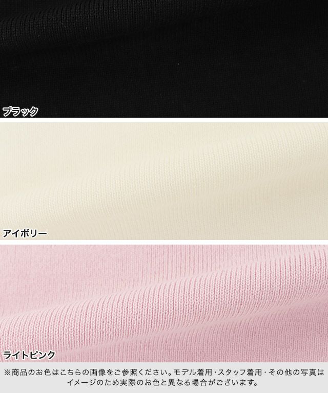また、ニット製品は生産の過程上「生地を織る際の糸の継ぎ目」繊維の「混紡」、プレス加工、製品洗い加工によって形やサイズ(5cm前後)に誤差が生じる場合がございますが品質上の問題はございません。