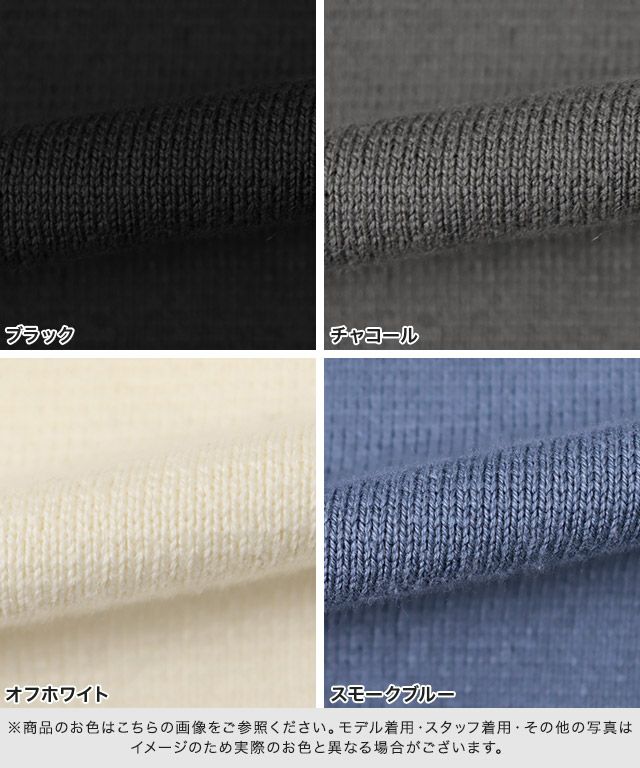 また、ニット製品は生産の過程上「生地を織る際の糸の継ぎ目」繊維の「混紡」、プレス加工、製品洗い加工によって形やサイズ(5cm前後)に誤差が生じる場合がございますが品質上の問題はございません。