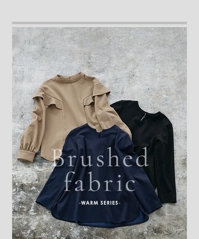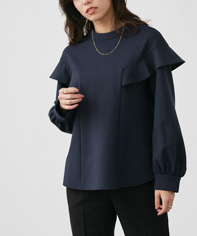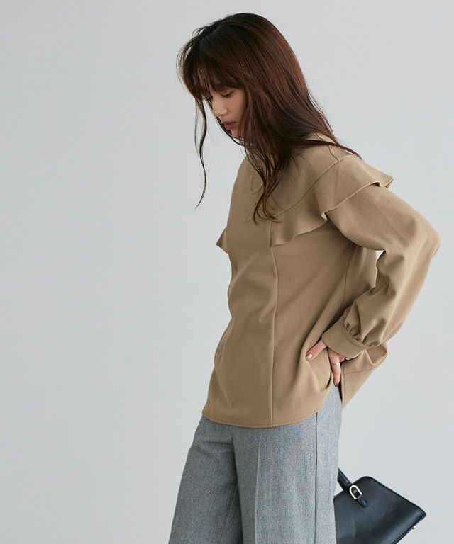 女性らしい印象をプラスする“裏起毛フリルショルダーブラウス”