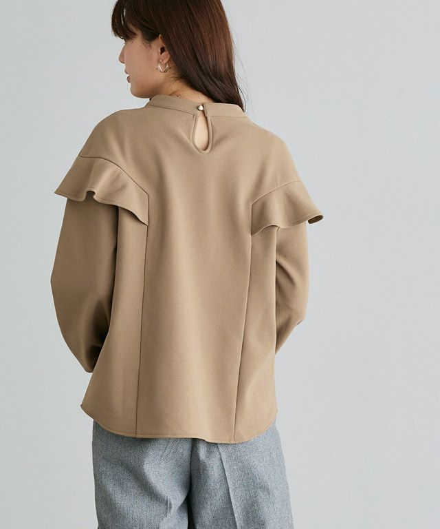 裏起毛フリルショルダーブラウス