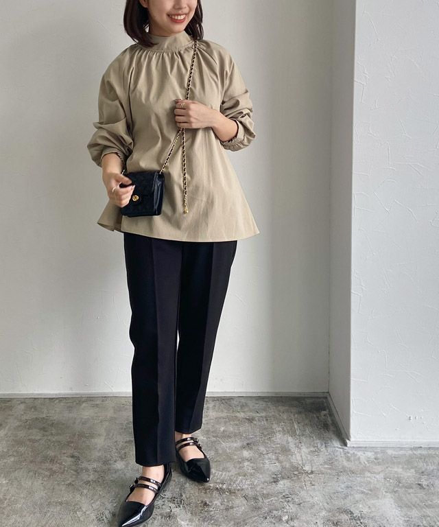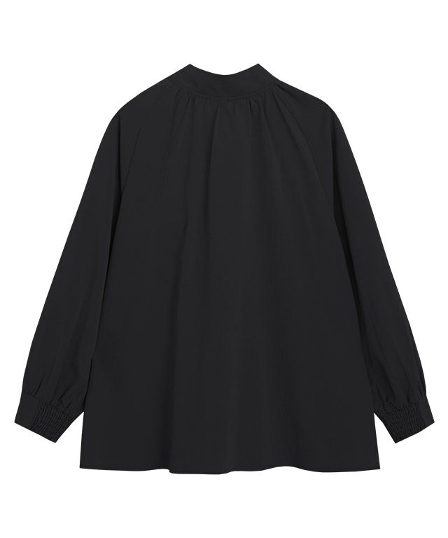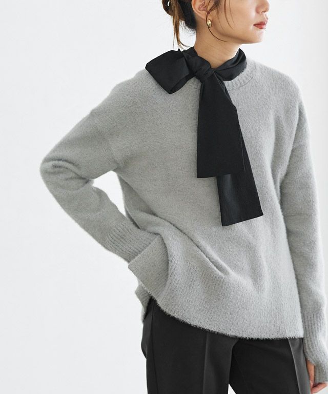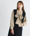 ハイネックとリボンの前後2wayで着用できるデザインブラウス。大きめのリボンがアクセントになりフェミニンな印象に。様々な結び方ができ、いろんなスタイリングに着回せます。ふんわり広がるAラインシルエットが女性らしく、腰周りの体型カバーにも◎インスタイルもしやすいフレア感に仕上げました。一枚での着用はもちろん、ジレやベスト、ジャケットなどのインナーとしての着用もおすすめです。