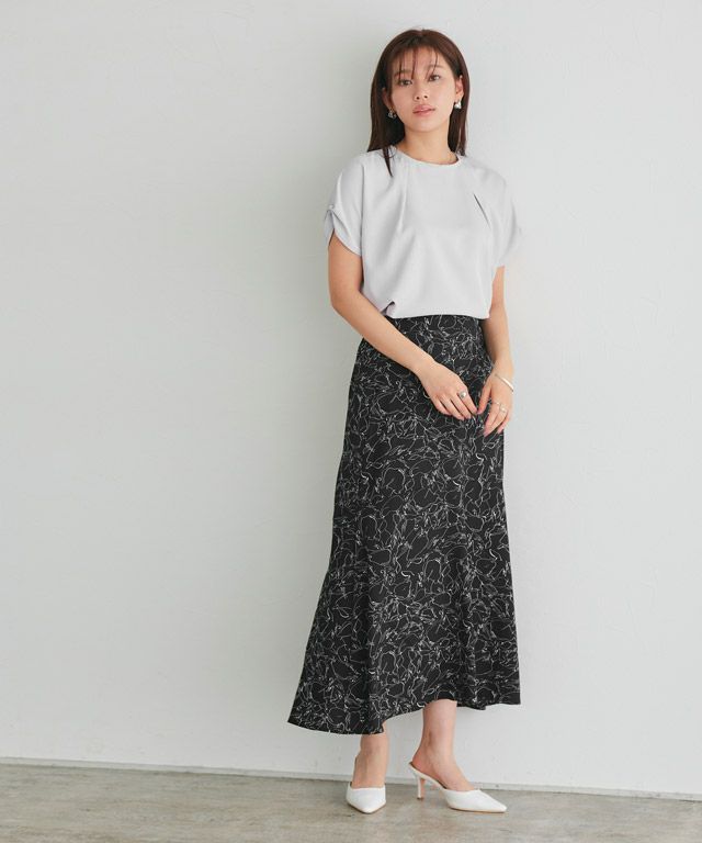 柔らかくさらっとした風合いが魅力の素材を使用。滑らかで落ち感のある素材が上品な女性らしさを演出します。