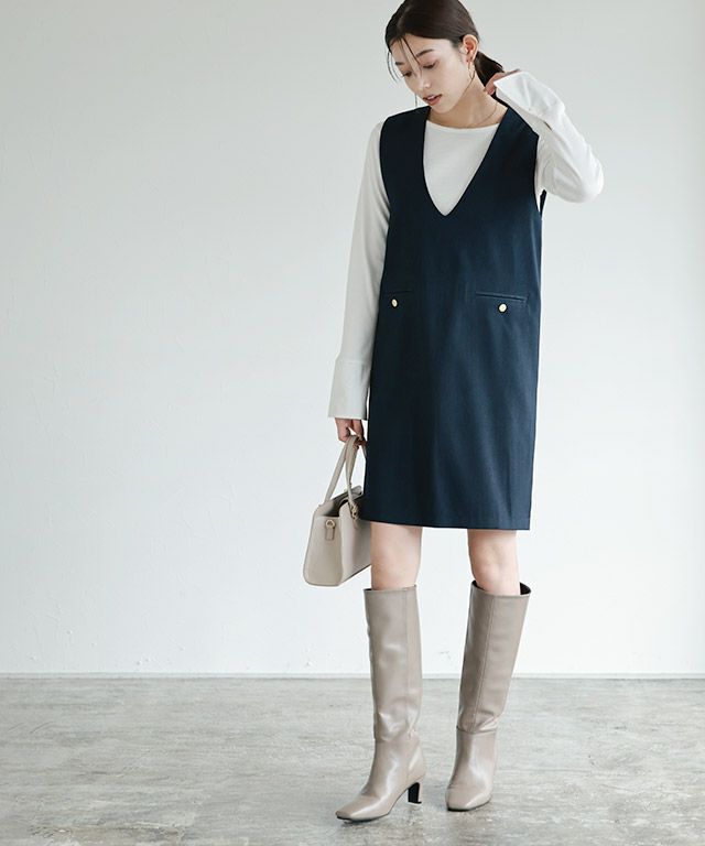 程よくフィットしながらも体のラインを拾いにくいサイズ感に仕上げました。 アクセントになっているカフスデザインは袖口丈を長めに設定し、 敢えて手の甲が隠れる丈にもこだわりました。